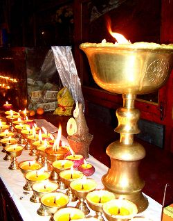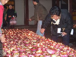 傳說藏歷十月二十五日,是藏傳佛教格魯巴(俗稱黃教)創(chuàng)始人宗喀巴大師圓寂成佛的日子。為了紀念這位杰出的宗教領袖,藏區(qū)各黃教寺廟和信徒于藏歷十月二十五日,舉行誦經、磕頭,燈供儀式等隆重的祭祀活動,祭祀宗喀巴大師在天之靈和祈愿大師賜與善良的人們以吉祥幸福。