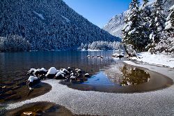 進(jìn)入木格措的冬天就是進(jìn)入了一片美麗的冰雪天地,然而在這里,除了冰雪,還有陽(yáng)光、沙灘、藍(lán)天處處充滿著浪漫的氣息。早晨,當(dāng)你站在海拔3780米的木格措海子觀景臺(tái)前,閉上眼睛細(xì)細(xì)品味雪山后暖暖陽(yáng)光照射在身上的感覺;工作、生活、煩惱……一切拋在腦后!在景區(qū)的樹上到處是漂亮的冰掛,讓人仿佛一下子進(jìn)入純潔晶瑩的人間仙境;在海子旁自然形成的一大片名為黃金海岸的沙灘,更是給來到這里的人們帶來情海的感受。