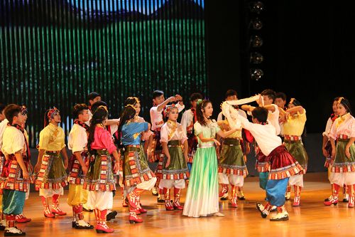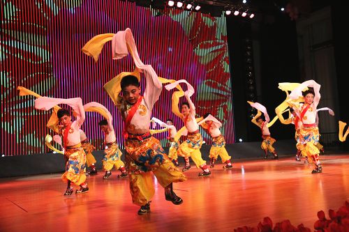 在歡快的音樂聲中,《師恩如歌》拉開了“園丁頌”文藝晚會(huì)的序幕。悠揚(yáng)的歌聲,歡快的舞蹈,熱烈的掌聲,演繹著同一個(gè)主旋律:“老師,是您為我們開啟了智慧的大門,加減乘除,算不盡您做出的貢獻(xiàn)!詩詞歌賦,頌不完對(duì)您的感激!千言萬語只能匯成一句話:老師,您辛苦了,我們永遠(yuǎn)感謝您!”晚會(huì)以“園丁頌”為主題,分為“播種希望”、“愛的光芒”、“九月禮贊”三個(gè)篇章。歌曲《圓夢(mèng)中國》、情景劇《守望白云》、舞蹈《老師親,媽媽親》等13個(gè)節(jié)目先后上演。一首首膾炙人口的歌曲,唱出了對(duì)人民教師的無限深情,一個(gè)個(gè)激情昂揚(yáng)的舞蹈,道出了對(duì)人民教師的萬般感激。旋律優(yōu)美、歡快熱烈、精彩紛呈的晚會(huì)深深地吸引了現(xiàn)場(chǎng)觀眾的眼球。一聲聲發(fā)自內(nèi)心的問候,一句句來自心靈的祝福,將晚會(huì)一次次推向高潮,晚會(huì)現(xiàn)場(chǎng)掌聲雷動(dòng)、歡呼雀躍,《吉祥祝福》歌舞表演為整臺(tái)晚會(huì)畫上了一個(gè)圓滿的句號(hào)。