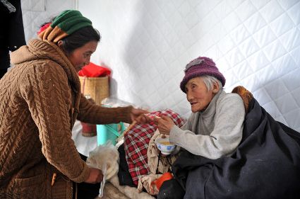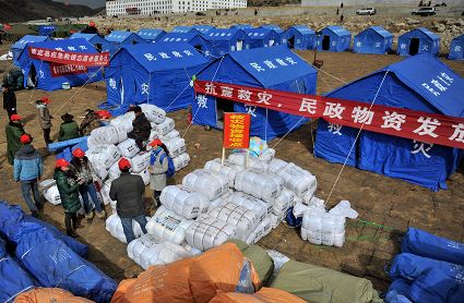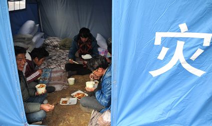 發(fā)放救災(zāi)物資及災(zāi)民生活掠影