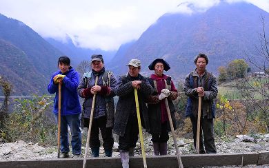 5、瀘定縣磨西鎮(zhèn)柏楊樹(shù)村的村民修路間隙。一直以來(lái),這里的村民進(jìn)村的路都是彎來(lái)繞去一下雨就坑坑洼洼的土路。村民說(shuō),明年春節(jié),他們出村的10余公里水泥路就通了。
