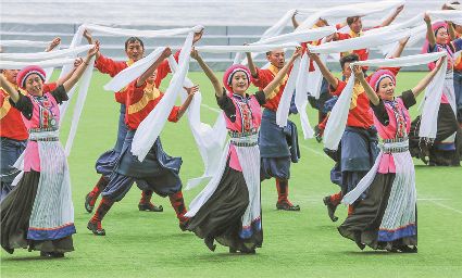 8月8日上午,康定北門體育場內(nèi)歌舞升平、彩旗飄揚(yáng),第九屆康巴藝術(shù)節(jié)開幕式文藝演出在此進(jìn)行最后一次帶妝彩排。本次彩排也讓我們對開幕式文藝演出充滿了期待。