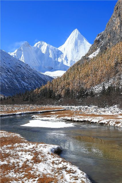 稻城亞丁給人的印象最深的應(yīng)該是一片片令人沉醉的秋景或那無(wú)處不在的青楊林,更多人不知道的是,其實(shí)稻城亞丁在冬季的美麗更為引人入勝。山巒與樹(shù)木銀裝素裹,瀑布與湖泊冰清玉潔,藍(lán)色湖面的冰層在日出日落的溫差中,變換著奇妙的花紋細(xì)細(xì)的水流發(fā)出沁人心脾的音樂(lè)。不管是冰天雪地還是人文風(fēng)情,或是原始風(fēng)光,冬季的稻城亞丁都能為您帶來(lái)最美好的視覺(jué)盛宴。