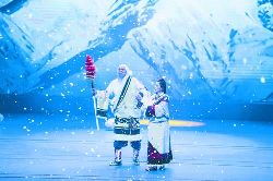 《圣潔甘孜·亞丁情》大型歌舞劇取材于稻城亞丁三座雪山分別象征慈悲、智慧、力量的民間傳說和民俗文化,根據(jù)當(dāng)?shù)靥赜械某绨葑匀缓捅Wo(hù)環(huán)境意識的三怙主文化,以圣潔甘孜亞丁的三座雪山為背景,融入傳統(tǒng)頌唱風(fēng)格、勞作場景、傳統(tǒng)藥泥面具與古裝,通過《豐收》、《打墻歌》、《敬酒歌》、《弦子舞》、《情歌對唱》、《亞丁三怙主》、《迎金剛》、《雄雞起舞》、《贊金剛》、《見解脫》等具有生活氣息和民俗色彩的歌舞表演,表達(dá)人們對雪山的感恩和敬畏,展現(xiàn)藏民族的淳樸善良,講述在落實(shí)黨的民族宗教政策和扶貧攻堅(jiān)行動中,人們在雪山下的樂觀心態(tài)和幸福生活。