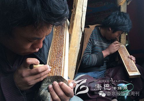 白玉的刀,還有一把不能不提,那就是刻刀。在白玉寺內(nèi),有三十多年刻木版經(jīng)書的傳統(tǒng),每天都有十幾個(gè)人手拿刻刀,在窗戶下,認(rèn)真地雕刻著。
