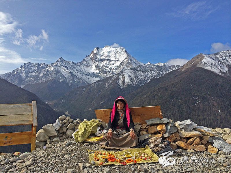 坐環(huán)保車進(jìn)入景區(qū),最好的座位當(dāng)然是倒坐在最后一排。我和那姆背風(fēng)坐著最后一排,看風(fēng)景后退或者說是前進(jìn)。那姆給我講起她17歲跟著父母、弟弟,舅舅和表妹六個(gè)人,牽著兩匹馬連轉(zhuǎn)三座神山的經(jīng)歷,一共用了六天時(shí)間,“經(jīng)常是這個(gè)埡口還在下著雪,連著的埡口就是大太陽,有時(shí)候我身體的左邊在雨里,身體的右邊在太陽下。”那姆拍著手歡呼著,“你知道嗎,我被彩虹照過,我就站在彩虹下面,彩虹穿過了我。”我好喜歡這個(gè)姑娘呀,陽光燦爛。有時(shí)候山路特別陡峭,爸爸在前面牽著馬,那姆托著馬的屁股,以防它摔下山崖。
