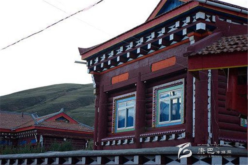 道孚民居的一般結(jié)構(gòu)是以藏式木架穿逗,作為整體骨架,一般為二、三層;以片石或泥土砌墻,按正方形各邊7-10尺為空間立柱,四柱之間稱(chēng)一空,一般房屋有16-30空,也有40、50空的。柱與柱之間有穿枋或原木鎖拉扯,其余維護(hù)結(jié)構(gòu)由橫向平置,圓弧朝外的對(duì)剖圓木組成,它們層層重疊、四角交叉相搭,房頂高約5至8米。比起改進(jìn)前,柱子直徑普遍加大,豪宅的柱子需兩人合圍,給人一種穩(wěn)重之感;底層和二層的木柱連體,并仿照內(nèi)地建筑的木穿逗式結(jié)構(gòu),梁柱接榫,形成一個(gè)牢固的整體,以增強(qiáng)抗震能力。外形多為四方形,二樓呈L形、凹形或回形,內(nèi)層結(jié)構(gòu)是純木材,架“棒柯”或“棒勒”,間隔為各種用途的房間。房間上裝木望板,下鋪木地板,頂蓋用樺樹(shù)皮或硬雜木條墊底再鋪“阿嘎土”,日曬雨淋絕不漏水。屋架門(mén)窗外表的裸露部分,則多以油漆或自制的有色土染過(guò),既防腐防蛀,又美觀大方。從外部看,二層平臺(tái)的女兒墻上,種滿(mǎn)了各種花草,房前屋后還種植了果樹(shù)。用泥土夯筑的底層和二層后方的土墻刷成白色,而木質(zhì)的半圓木墻體涂成褐紅色,窗框和窗扇均作彩繪,室內(nèi)裝飾也都用紅色等“火熱”的基調(diào)。各種色彩相互協(xié)調(diào)映襯,給人的印象特別深刻。
