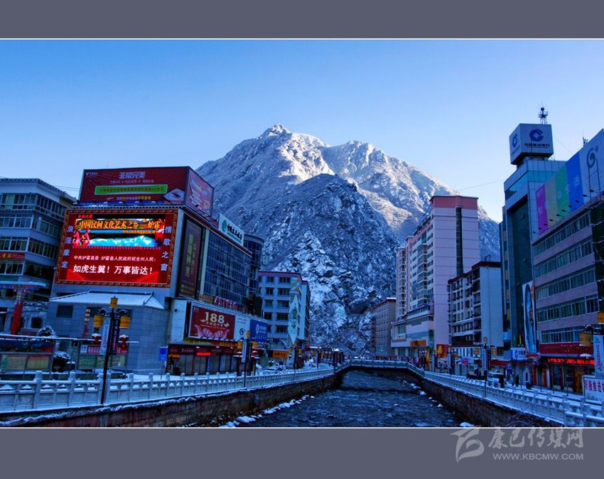 春雪中的康定城。