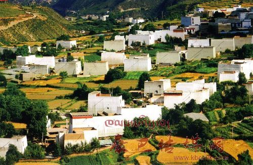白色藏房組成的村寨依山傍水,在四周農(nóng)田的襯托下,給人一種揮之不去的家園的感覺(jué),令人流連忘返。