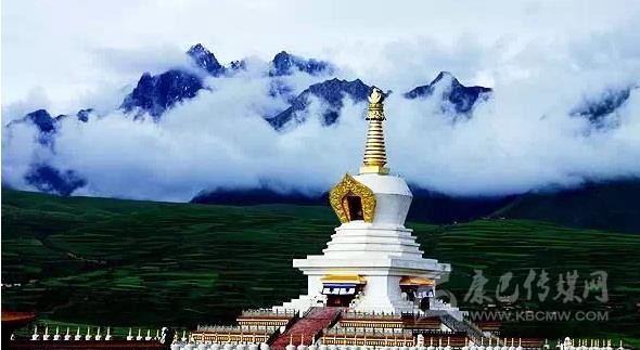 沿著甘孜縣城門向東南一望,一座37米高的大寶塔便呈現(xiàn)在你的眼前,寶塔其底三層寶座均北京天壇祈年殿座底比列大小而建。雄偉壯觀。