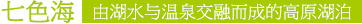 位于仙乃日與央邁勇之間,海拔4600米,在牛奶海的上方,翻上一片陡峭的山岡,再上升100 多米,在山脊上就能俯瞰五色海了,湖面呈圓形。面積0.7 公頃,水色變化無窮。五色海由于會(huì)在光的折射下,產(chǎn)生五種不同的顏色而得名。其藏名為“木底錯(cuò)”、“單增錯(cuò)”,是藏族聚居區(qū)著名的圣湖(佛經(jīng)中贊譽(yù)該湖與西藏羊卓雍錯(cuò)齊名),據(jù)傳能“返演歷史,預(yù)測(cè)未來”,有很多宗教上的傳說。