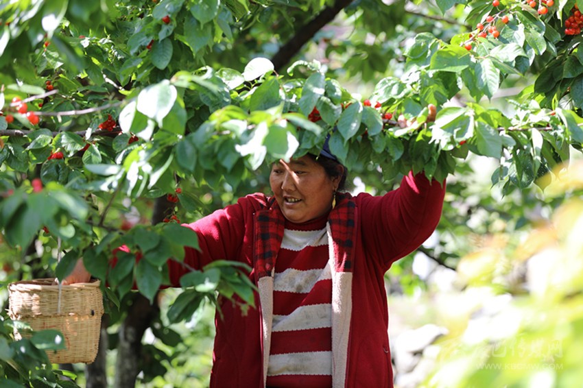 眾所周知,瀘定紅櫻桃早已紅遍四川,瀘定紅色文化更是曉喻九州。近年來,瀘定縣以創(chuàng)建“國(guó)家全域旅游示范區(qū)”“天府旅游名縣”為抓手,從旅游產(chǎn)品打造、旅游服務(wù)保障、旅游形式多元化等方面發(fā)力,大力推動(dòng)“旅游+”和“+旅游”產(chǎn)業(yè)深度融合發(fā)展,推出紅色經(jīng)典瀘定橋、冰川溫泉海螺溝、最大平臺(tái)牛背山、景觀大道G318、最美階梯二郎山、陽(yáng)光田園大渡河、川藏茶馬古驛道“七張名片”,同時(shí)將以櫻桃產(chǎn)業(yè)為主的果蔬產(chǎn)業(yè)同鄉(xiāng)村休閑旅游業(yè)深度整合。特別是自新冠疫情發(fā)生以來,瀘定縣積極思謀、創(chuàng)新探索“旅游+農(nóng)業(yè)”“網(wǎng)絡(luò)+營(yíng)銷”“線上+線下”的農(nóng)旅發(fā)展新模式,打通網(wǎng)絡(luò)電商與農(nóng)村物流渠道,努力保證農(nóng)民增產(chǎn)增收。杵坭村種植大戶劉爽興奮地向記者介紹:“今年收成不錯(cuò),銷售路子也不愁!恩桃兒還沒熟,就接到一摞訂單。辦了12屆的采摘節(jié),真是把我們?yōu)o定紅櫻桃的名氣打出去了,期期游客爆滿,大家從全省各地過來吃恩桃兒,都夸我們紅櫻桃好,村民心頭美滋滋!”