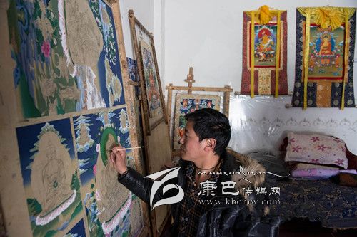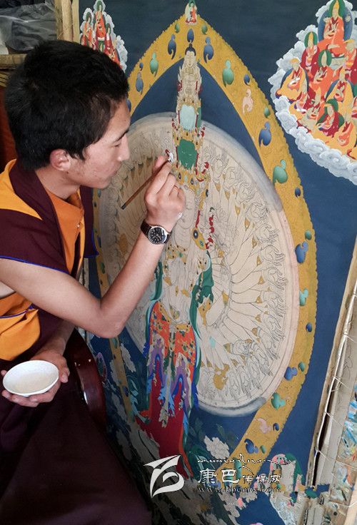 11月11日,一位畫師在創(chuàng)作郎卡杰唐卡。