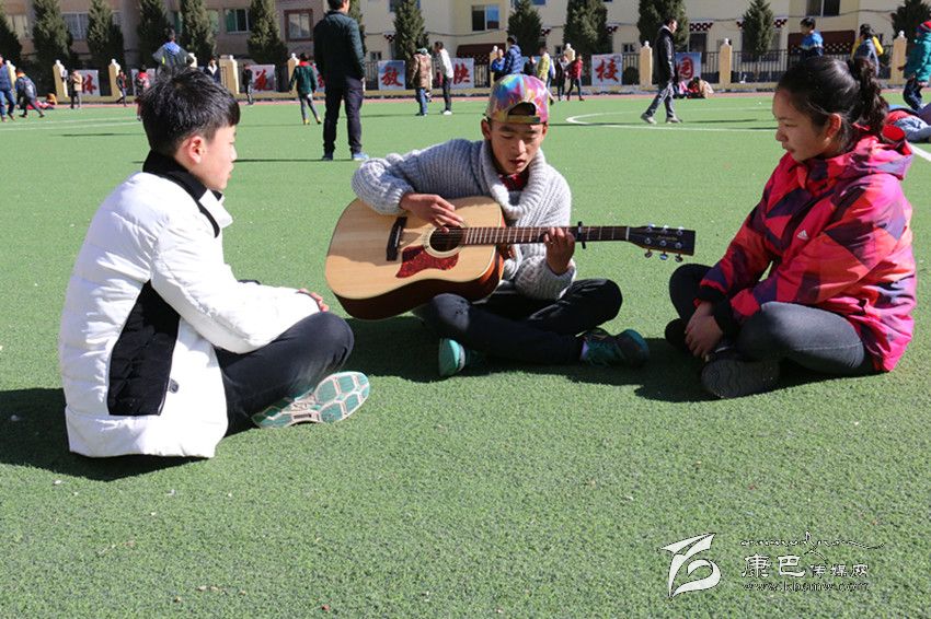 “白云下一座溜溜的城/聽著溜溜的歌聲/李家那溜溜的大姐喲/溜溜愛上藏家大哥喲/尋夢在溜溜的跑馬山/我推著金桶溜溜轉(zhuǎn)/折多河溜溜穿城過喲/頌經(jīng)聲溜溜的傳承喲/悠揚(yáng)琴聲在溜溜小城/我溜溜等待著愛人/跑馬山龍打溜溜撒喲/心就在溜溜城中活……”最近一首名叫《溜溜》的歌曲刷爆了記者的朋友圈,不到一天的時(shí)間點(diǎn)擊率達(dá)到12000多,干凈的嗓音碰上吉他、貝斯等流行元素,給聽眾帶了一種不同的音樂享受?!读锪铩返脑~曲作者周麒(當(dāng)然他也是原唱之一)和主唱昂汪央金拉姆、周楠都是來自康定中學(xué)的學(xué)生,在冬日的午后,記者在康定中學(xué)的籃球場見到了這三位一臉天真的原創(chuàng)者。初見記者,他們還有一些靦腆、緊張,但是一談到音樂,他們立刻有了說不完的話。