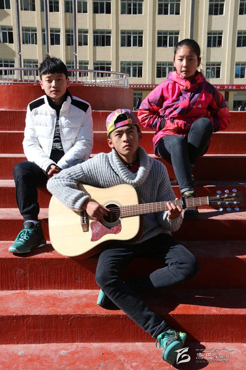 對于幾個(gè)十來歲的小家伙來講,“音樂”賦予他們的是什么?“不是揚(yáng)名立萬,而是那種暢游在音樂里的快感”詞曲作者周麒說。周麒現(xiàn)在就讀于康定中學(xué)高一,說起自己的音樂生涯,一臉的興奮。從小就受父親的影響鐘情于音樂,從很小的時(shí)候就開始參加各種歌唱比賽。要說周麒真正開始接觸音樂,應(yīng)該從小學(xué)六年級開始說起,小小的他背著大大的吉他游走在康定的所有吉他培訓(xùn)班之間,別的小孩玩耍的年齡,他卻在刻苦的學(xué)習(xí)吉他,只為了能將吉他的技藝練習(xí)得更加?jì)故?。如今在這個(gè)小團(tuán)隊(duì)里,他的吉彈奏技藝讓他理所當(dāng)然的成為了“元老級人物”。