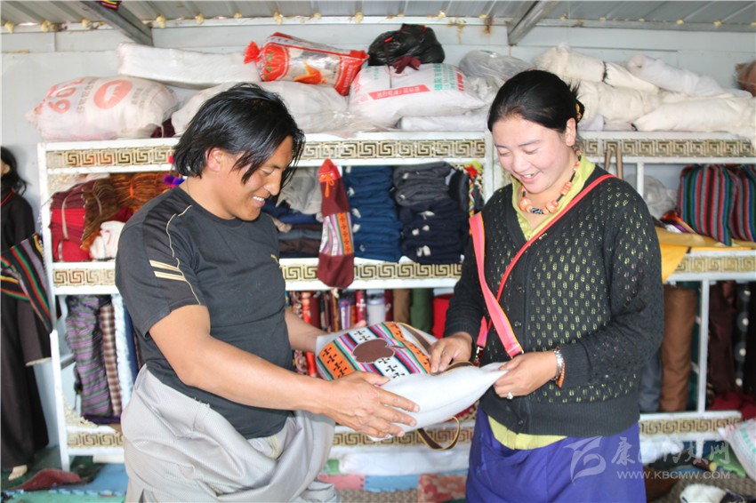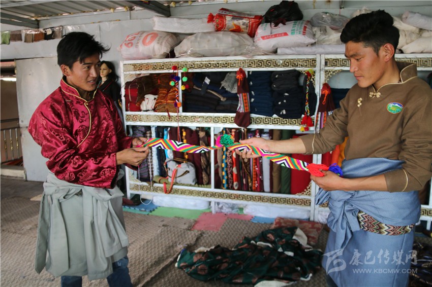 安孜鄉(xiāng)作為白玉縣海拔較高的鄉(xiāng)鎮(zhèn)之一,夏天是十分短暫的,連日來的晴好天氣,也透著絲絲寒氣。牧民阿剛想要量身定做一套過冬的藏裝,913,他來到白玉縣阿察鎮(zhèn),一家民族服飾商貿(mào)公司吸引了他的目光?!拔覀冞@里的服裝面料是本地羊毛和從浙江進的上等面料,做工考究,很多工序是純手工制作,服裝樣式你可以根據(jù)你的喜好指定,我們包你滿意?!钡陠T仁真熱情地介紹。聽了仁真的介紹,阿剛用手捻了一下服裝用料的質(zhì)地,看到印有“祥陽措”商標的精美包裝袋,商店里擺放的五彩斑斕、高端大氣的藏式男女服裝,他有些動心了?!吧a(chǎn)這些服裝的都是我們納塔鄉(xiāng)的牧民,你可以考察我們的服裝用料、生產(chǎn)流程,再作打算?!比收鏌崆檠笠绲亟榻B說。