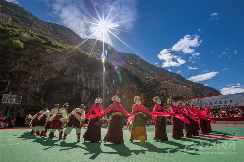悠悠的牧歌、遼闊的草原、古老的盛裝,寄托著紅龍鄉(xiāng)兒女對盛會的吉祥祈愿和聲聲祝福;瓦多鄉(xiāng)鍋莊隊那別致的發(fā)飾“日月銀盤”,揮舞的水袖、律動的舞步,訴說著古老部落在黨的帶領(lǐng)下攻堅克難奔向小康的生動故事……