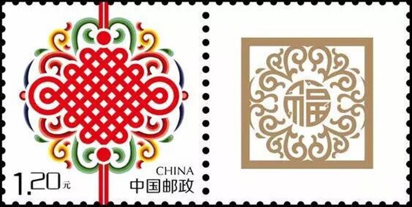 2002年5月10日,中國(guó)郵政發(fā)行《如意》個(gè)性化服務(wù)專(zhuān)用郵票一枚。主票圖案為如意柄端系著一個(gè)紅色“中國(guó)結(jié)”,附票有“祝福”二字; 2003年3月3日,中國(guó)郵政發(fā)行《同心結(jié)》個(gè)性化服務(wù)專(zhuān)用郵票一枚。主票圖案為盤(pán)長(zhǎng)結(jié)4邊編織有心型繩結(jié)的同心結(jié),附票為“祝?!倍郑?006年9月25日,中國(guó)郵政發(fā)行《中華全國(guó)歸國(guó)華僑聯(lián)合會(huì)成立五十周年》紀(jì)念郵票一枚。圖案為阿拉伯?dāng)?shù)字“5”與中華全國(guó)歸國(guó)華僑聯(lián)合會(huì)圓形會(huì)徽組成數(shù)字“50”,象征全國(guó)僑聯(lián)五十周年,背景畫(huà)面為淡淡的粉紅色“中國(guó)結(jié)”。寓意歸國(guó)華僑與全國(guó)人民血肉相連,同心同德共同建設(shè)美好家園;2013年8月8日,中國(guó)郵政發(fā)行一枚《美好祝?!焚R卡專(zhuān)用郵票,圖案為象征喜慶的紅色“中國(guó)結(jié)”;2014年9月20日,中國(guó)郵政發(fā)行《中國(guó)夢(mèng)(二)——民族振興》特種郵票,其中第四枚“民族團(tuán)結(jié)”,圖案中載歌載舞的各民族群眾上方有一個(gè)大紅的“中國(guó)結(jié)”,象征著各民族大團(tuán)結(jié)。