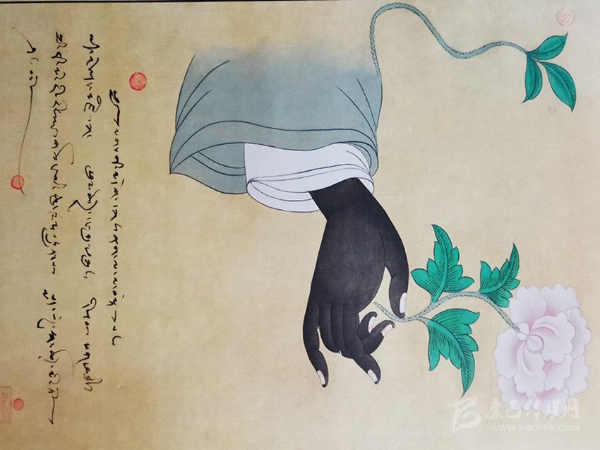 按照耷·瓊培所說,本文開頭提到的那副唐卡畫也有著特殊的意義。據(jù)了解,該幅唐卡畫名為《紅黑白》,整幅畫旨在表達(dá)無所謂手腕的黑白,艷麗與秀雅,完美與尊崇,源自手心的花莖就會被潔凈的細(xì)流滋養(yǎng),最終盛開蓮花簇簇。