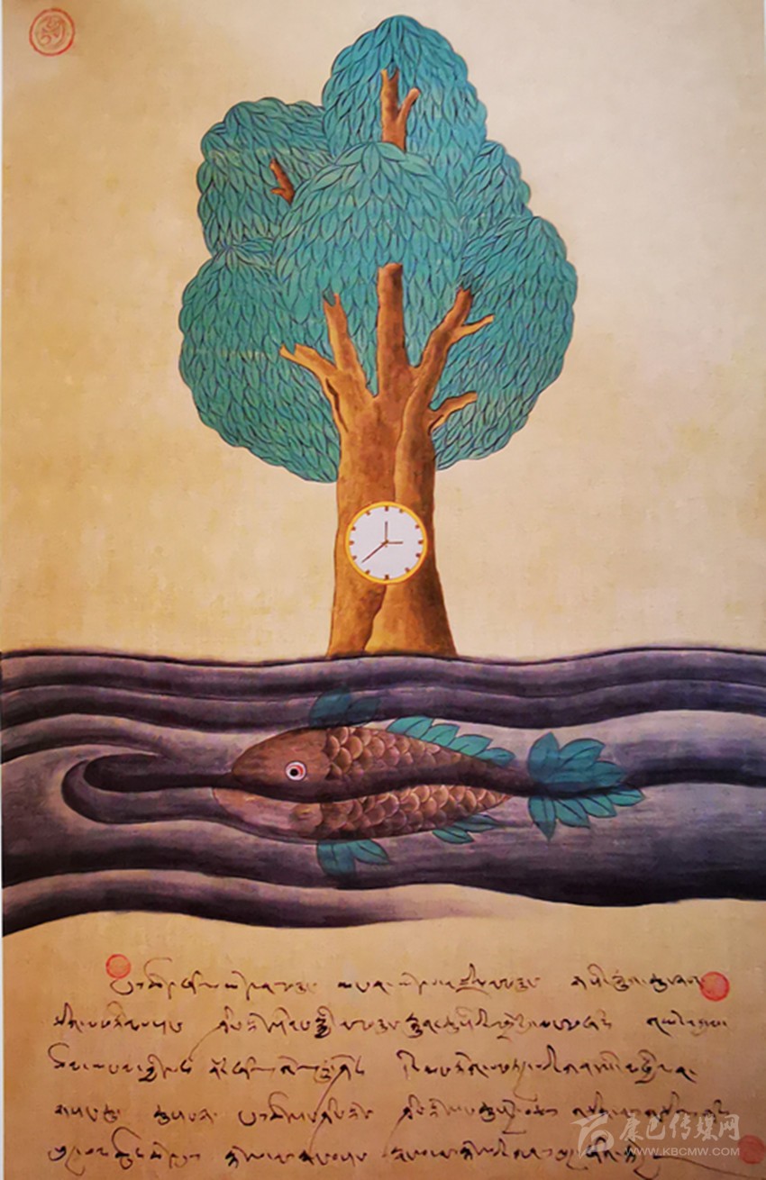 耷·瓊培介紹說:“在新概念唐卡中,慈悲、智慧、勇猛之力是通過一朵花、一片云、一條河、一捧沙來展現(xiàn),每幅作品都有嶄新的理念、巧妙的構(gòu)思、簡潔的構(gòu)圖、抽象的符號、象征性的語言和裝飾化的風(fēng)格,總體來說頗有清新之意?!?/span>