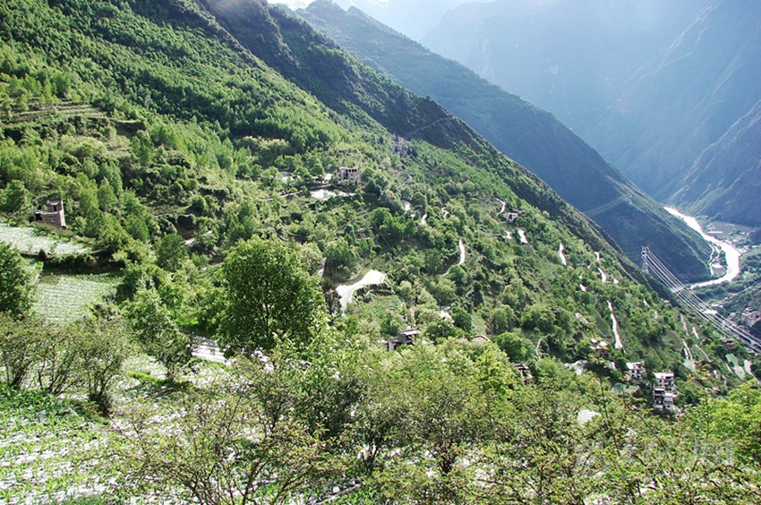 老家的中學地處峽谷之中,一條小溪從學校后面的峽谷中奔涌而出。由于這條溝谷里又有九條山脊,因此又稱為九道溝。各條小山谷里的溪流匯合之后,竟然形成了與河流大小相近的水流。當流經中學旁時,狹窄的溝谷使得溪流狂躁起來,撞擊著兩岸的山崖,翻卷著浪花,發(fā)出震耳欲聾的聲響。最后匯入小金川河之中,向著遠處的大渡河奔去。