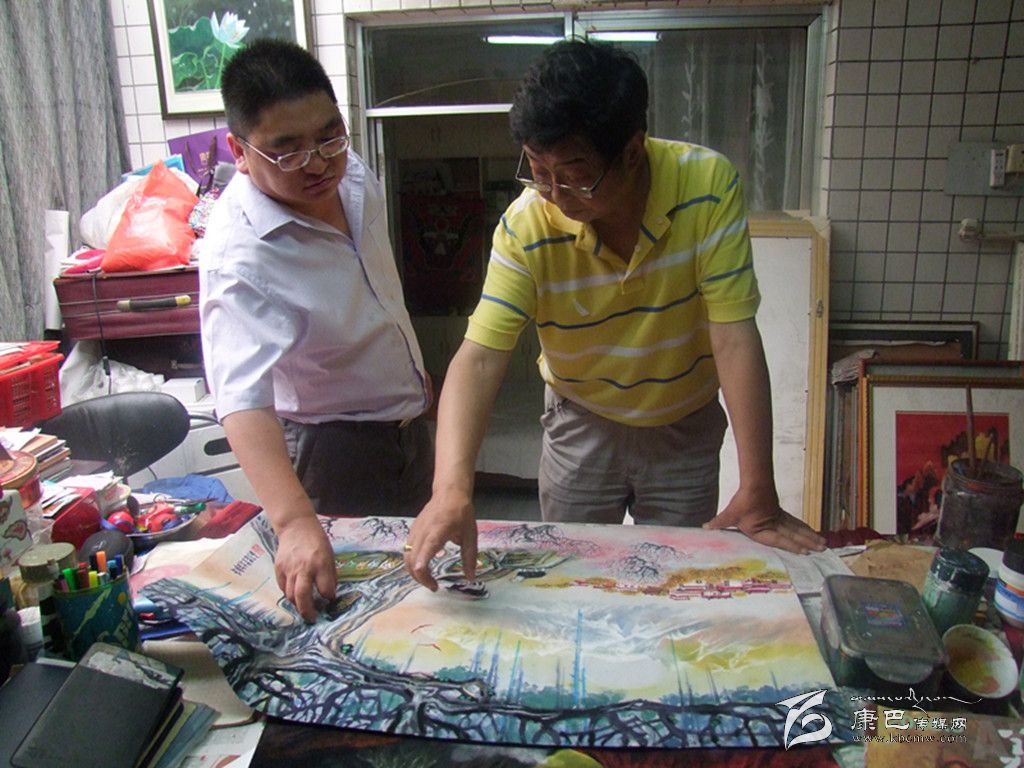 得知記者在《成都日報》學習,文光裕先生便盛情相邀記者去他家里做客。7月9日,記者到雙流采訪了文光裕先生。文光裕先生詼諧幽默,學說逗唱、琴棋書畫樣樣都懂。他具有平和的心態(tài),所以看起來特別年輕,記者見到他的時候,很難把古稀老人與他聯系起來。人未見,笑聲先到,文光裕先生爽朗的笑聲感染了記者。他正在創(chuàng)作新舊康定對比繪畫作品。雄奇險峻的郭達山下,湍急的河水,密密麻麻的民房,這就是他記憶中上個世紀50年代的康定,雖然長期居住在內地,但文光裕先生思鄉(xiāng)心切,用繪畫的形式來寄托對家鄉(xiāng)的思念。