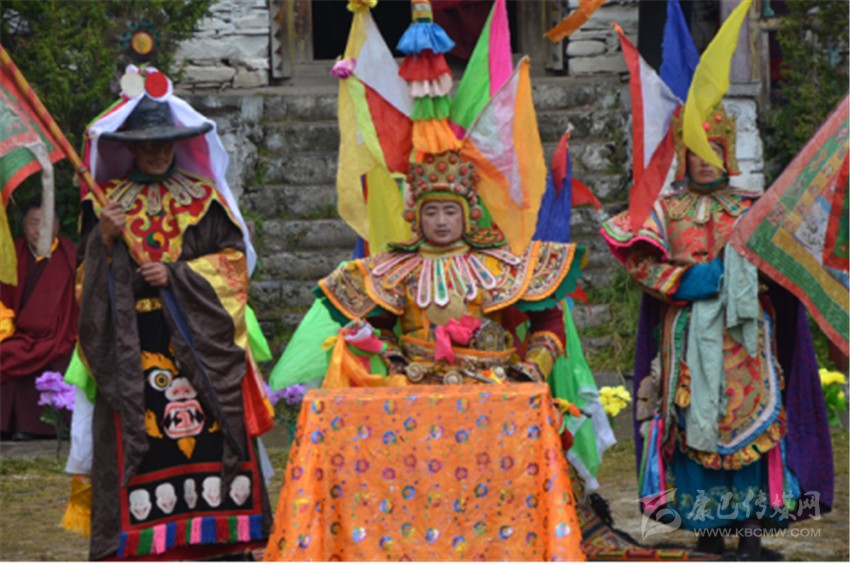 藏戲,是我鐘情的格薩爾史詩文化的重要組成部分。我在四川藏區(qū)、西藏、青海乃至甘肅、內(nèi)蒙古、新疆、云南等省區(qū),較多地欣賞到了各種流派的藏戲,從藏戲的表演特點上看,要把藏戲的表演特征完全歸類于哪一種流派,的確是不容易的事,也是不合理的。我們?nèi)绻咽澜缟系墓爬蠎騽澐譃槿蟛糠?,即古希臘喜劇和悲劇、印度梵劇和中國戲曲,那么我們很難把藏戲與這三種古老戲劇相區(qū)別,因為彼此之間有太多的相似之處,也有太多的差異。在我觀賞過的許多流派的藏戲看來,感到其類型、表演方式和內(nèi)容較多地受到印度梵劇的影響,尤其藏戲開場時,在人物(如“溫巴”、“甲魯”、“拉姆”)的運用上,顯然富有濃厚的印度梵劇中“概念人物劇”的特色和痕跡,但是,倘若因此認(rèn)為藏戲是從印度傳過來的,我以為這樣界定顯然有些牽強和武斷。因為藏戲除了以印度梵劇有很多相似之處外,也在故事情節(jié)的延伸有著很大的不同,尤其故事情節(jié)的細(xì)膩更是超越了印度梵劇,很多故事情節(jié)日益生活化,日益緊湊化,臺詞精細(xì)化,使其愈加超越并不同于印度梵劇。演員在服飾上也展示了大量的原始生活元素,并不具備較多的宗教服飾特征。