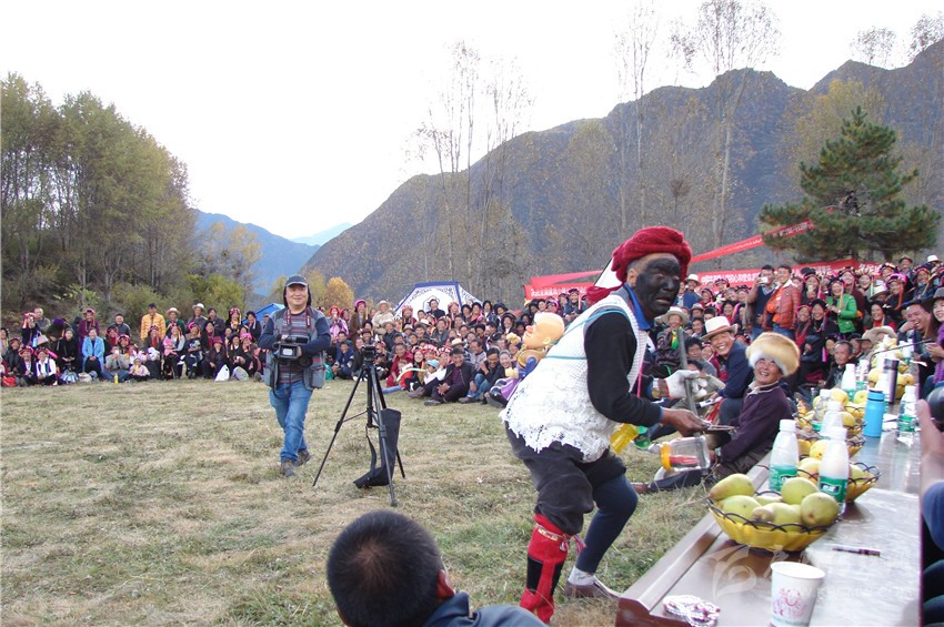 其實(shí),對(duì)于這種畫臉的劇種,我以為,它最初應(yīng)該來源于地頭文化,古時(shí)候的嘉絨農(nóng)村,文化生活異常貧乏,在歷史的長(zhǎng)河中,原住民主要依靠放牧及種地為生,在一起勞作時(shí),男人和女人之間常常會(huì)開一些的玩笑,一般無所避諱。