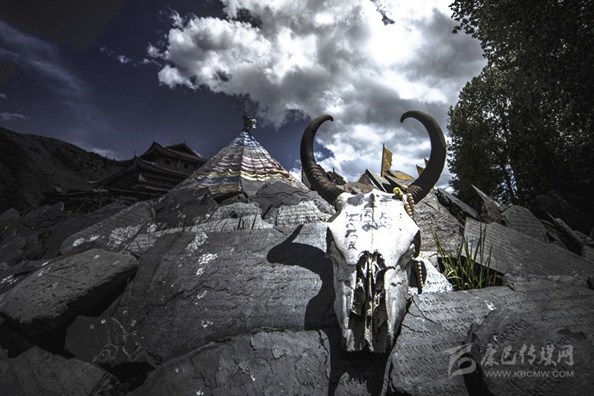 牦牛作為神圣的寶物,在藏區(qū)許多圣山、圣湖也賦予牦牛一種神性。西藏著名雅拉香布圣山、崗底斯神山、康區(qū)的雅拉圣山,山主為騎白色神牦牛的武士。甚至藏傳佛教儀軌中也有牦牛,著名護法吉祥天女為牛面護法,寺院金剛舞中有牛頭面具。洛桑卻晉大師所著的“六臂金剛儀軌吉祥天母酬供中云”,黑色長毛牦牛似烏云翻卷,高豎尖利犄角,發(fā)出十三聲怒吼。它似巍峨的青山,一聲怒吼震顫須彌山,常施乳汁皆意足,飄逸尾巴似雨后云朵。又如怙主群主儀軌中白雅(牦公牛)身有綠玉紋,敬予大自在怙主汝。鵬、獅、虎和牛,敬予男瑜伽神身。