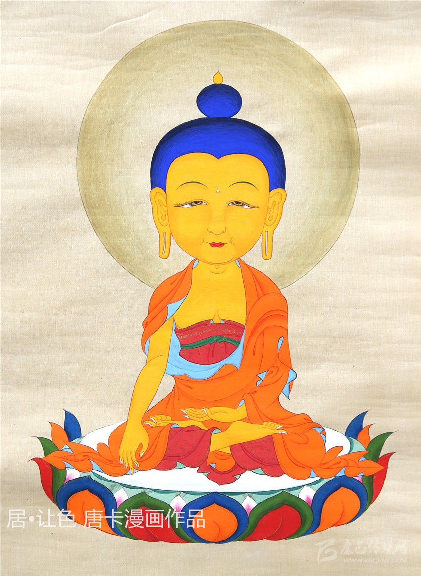 唐卡是藏族最具代表性的藝術(shù)門類之一,在其千年的傳承歷史中吸收融合了印度、尼泊爾等多地的藝術(shù)元素,發(fā)展成為極具雪域特色和審美價(jià)值的藝術(shù)形式。傳統(tǒng)唐卡缺乏立體感和形象感,畫面層次模糊,人物形象單薄,不利于民族文化傳承,“對(duì)于不懂畫的人來說,這種畫法他們看不懂。”基于此,居·讓色對(duì)唐卡繪畫技法作了改良,結(jié)合現(xiàn)代漫畫,以寫實(shí)的手法,實(shí)現(xiàn)活態(tài)傳承、永續(xù)流傳目的。
