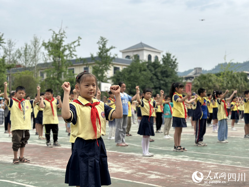 5月31日,南充市嘉陵區(qū)之江小學,學生們正在進行課間操活動。人民網記者 王波攝