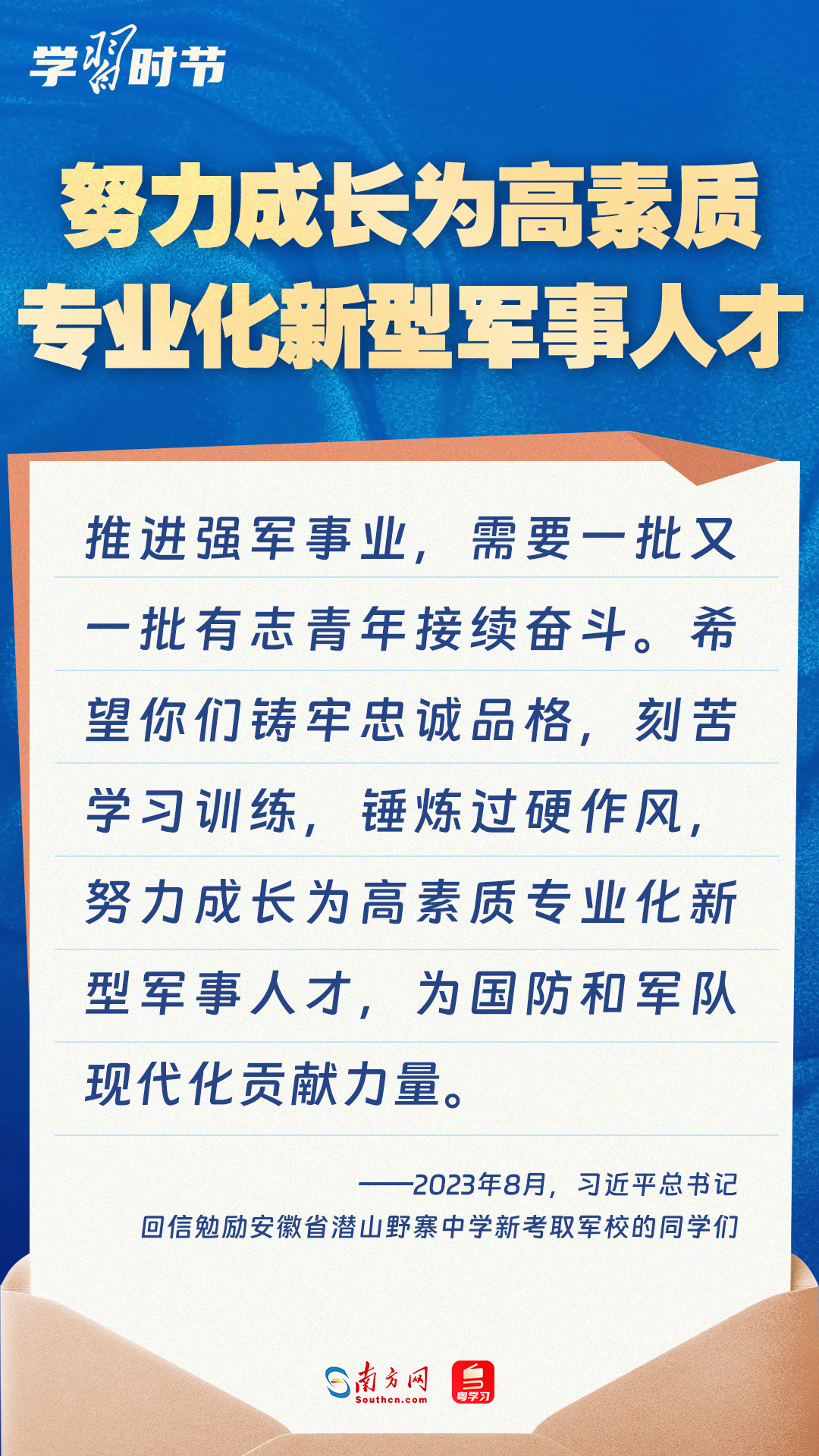 強國必須強軍,軍強才能國安。黨的十八大以來,習(xí)近平總書記始終牽掛一線官兵冷暖,高度重視我軍院校教育和人才培養(yǎng)工作,多次給部隊官兵、軍校學(xué)員等回信。讓我們一起重溫總書記的諄諄寄語!