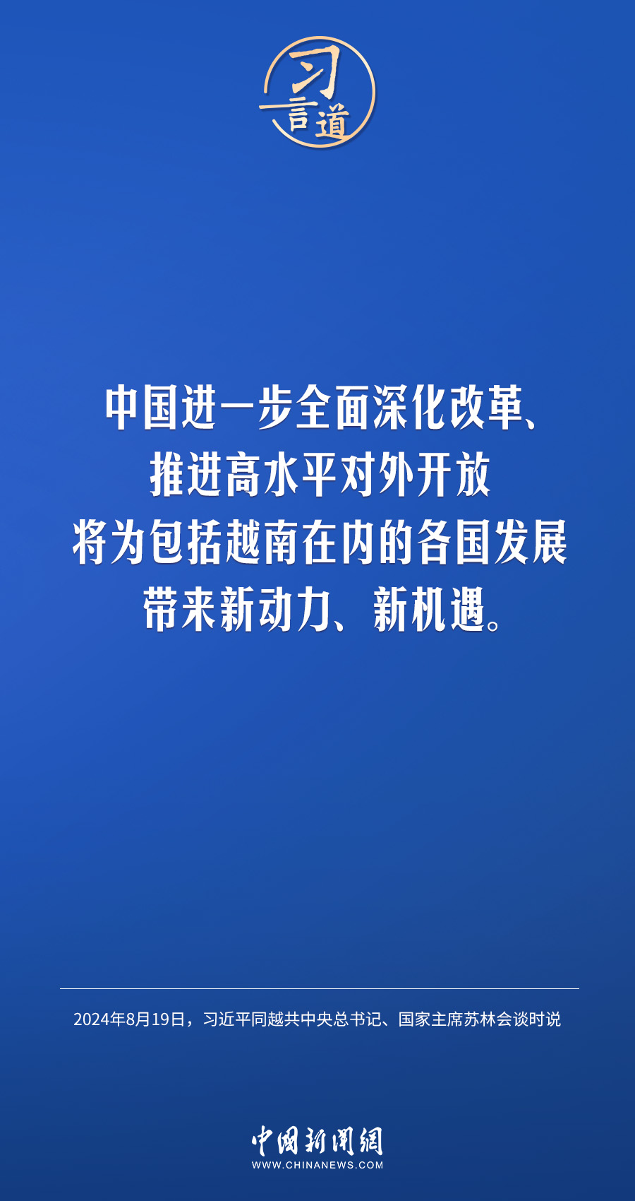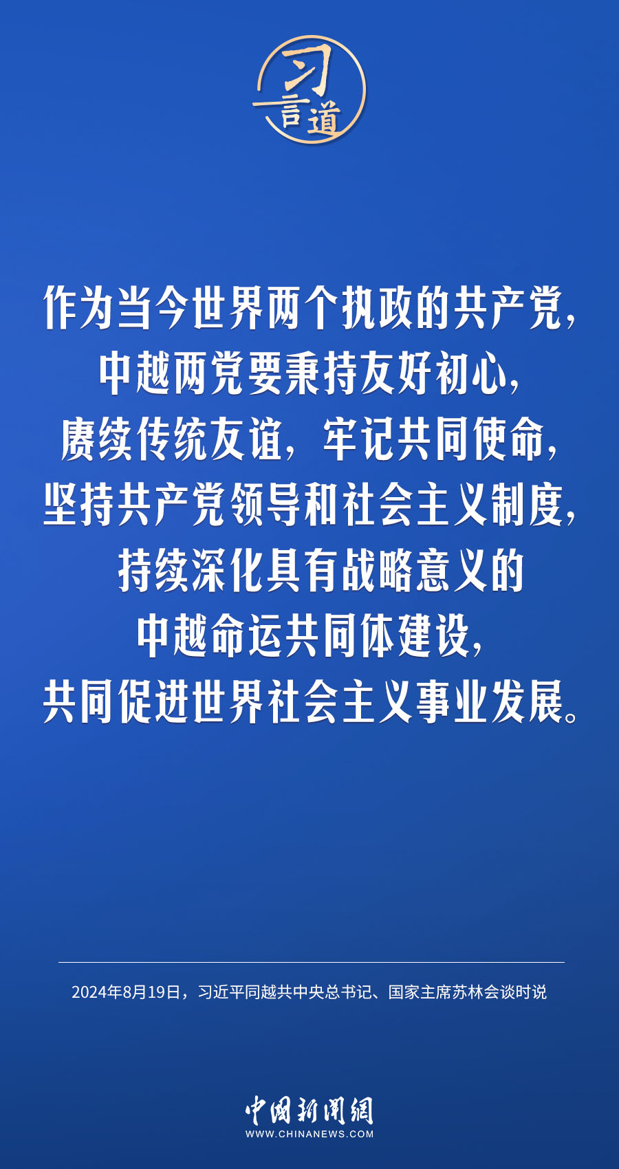 8月19日,中共中央總書記、國家主席習近平在北京人民大會堂同來華進行國事訪問的越共中央總書記、國家主席蘇林舉行會談。習近平指出——