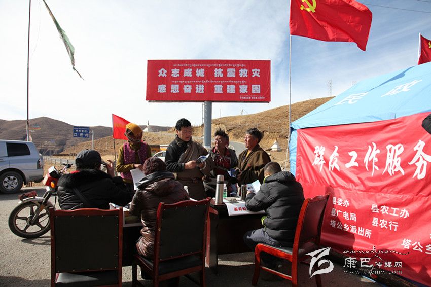 “22日晚,地震發(fā)生不久,我們便忙了起來,一邊是要統(tǒng)籌抗震救災(zāi)的前期工作,一面還要和自己的結(jié)對親戚聯(lián)系,因?yàn)榇舜蔚卣鹫鹬芯臀挥谒?zhèn)。”正在江巴村為結(jié)對親戚核查災(zāi)情的康定縣委辦干部李萍介紹說,我們縣上各機(jī)關(guān)企事業(yè)單位第一時(shí)間便組建了“黨建服務(wù)隊(duì)”。平均每天有近百人深入各村各戶,全力以赴參與查災(zāi)核災(zāi)、物資發(fā)放、安置點(diǎn)設(shè)立、救災(zāi)帳篷搭建等工作。