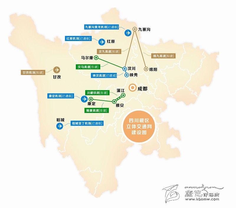 上月出臺(tái)的《四川省推進(jìn)實(shí)施長(zhǎng)江經(jīng)濟(jì)帶綜合立體交通走廊規(guī)劃工作方案》中提出,我省將加快支線機(jī)場(chǎng)建設(shè),包括進(jìn)一步完善位于四川藏區(qū)的紅原機(jī)場(chǎng)配套設(shè)施,以及將在“十三五”期間,開工建設(shè)同樣位于藏區(qū)的甘孜機(jī)場(chǎng)。鐵路方面也有好消息,備受關(guān)注的川藏鐵路,除了剛剛?cè)€開工的蒲江至雅安段外,還將在明年上馬建設(shè)雅安至康定(新都橋)段。