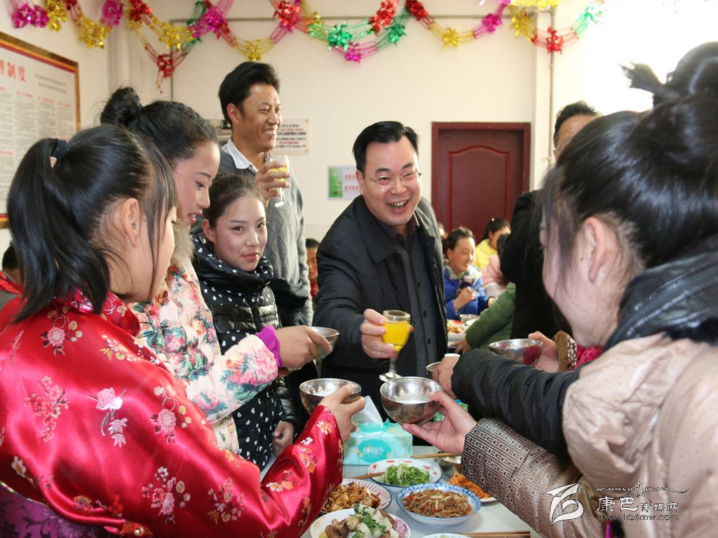 “現(xiàn)在我們共同舉杯,祝愿我們的老師們家庭幸福,祝愿孩子們學習進步,健康成長,新年有新成就,扎西德勒。干杯!”胡昌升以茶代酒,祝福大家春節(jié)愉快、萬事如意。
