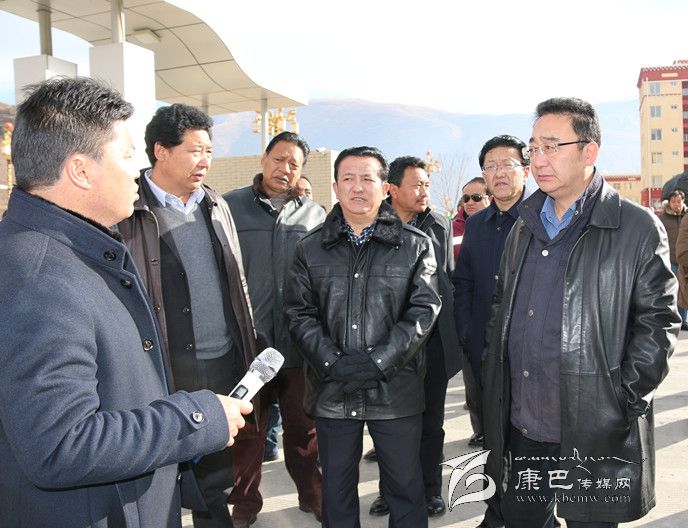 圖為李康、益西達(dá)瓦與參會人員在爐霍縣考察城市建設(shè)。