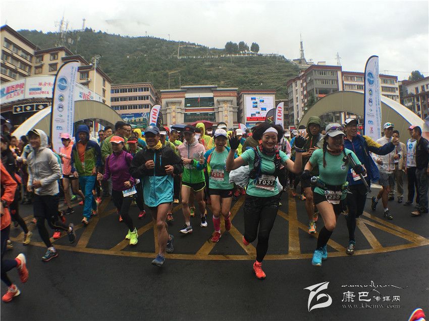 國家體育總局登山運動管理中心書記續(xù)川宣布2016中國·甘孜環(huán)貢嘎山百公里國際山地戶外運動挑戰(zhàn)賽暨全國徒步大會正式開賽,比賽在蒙蒙細雨中拉開帷幕。山地戶外運動越野賽的200名參賽選手從情歌廣場向跑馬山進發(fā),通過資格賽進入決賽的選手將于明日凌晨5時在康定情歌廣場參加此次挑戰(zhàn)賽正賽。