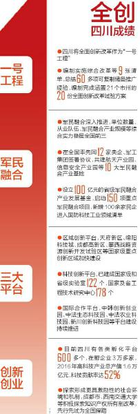 新變化源自新機(jī)遇。2015年8月,四川等8個區(qū)域被確定為國家系統(tǒng)推進(jìn)全面創(chuàng)新改革試驗區(qū)。全面創(chuàng)新改革試驗,是改革開放近40年來中央交給四川最重要的改革任務(wù),作為引領(lǐng)發(fā)展的“一號工程”,一年多來,四川已在軍民融合、科技成果轉(zhuǎn)化、人才培養(yǎng)、金融服務(wù)等多個領(lǐng)域大膽創(chuàng)新,亮點(diǎn)頻現(xiàn)。