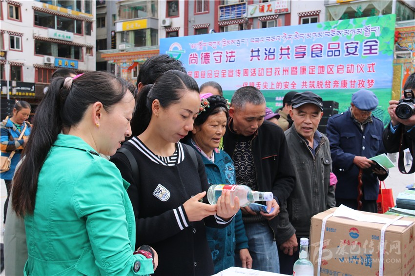 啟動儀式后,在康定情歌廣場上,來自州食安委和康定市食安相關(guān)成員單位通過現(xiàn)場咨詢、板塊展示、張貼海報(bào)標(biāo)語、發(fā)放資料等方式,為前來關(guān)注食品安全的市民們發(fā)放和講解相關(guān)問題。在現(xiàn)場,記者看到廣大市民關(guān)注最多的是假冒偽劣食品,對于如何識別,現(xiàn)場工作人員都一一進(jìn)行了耐心細(xì)致地講解。