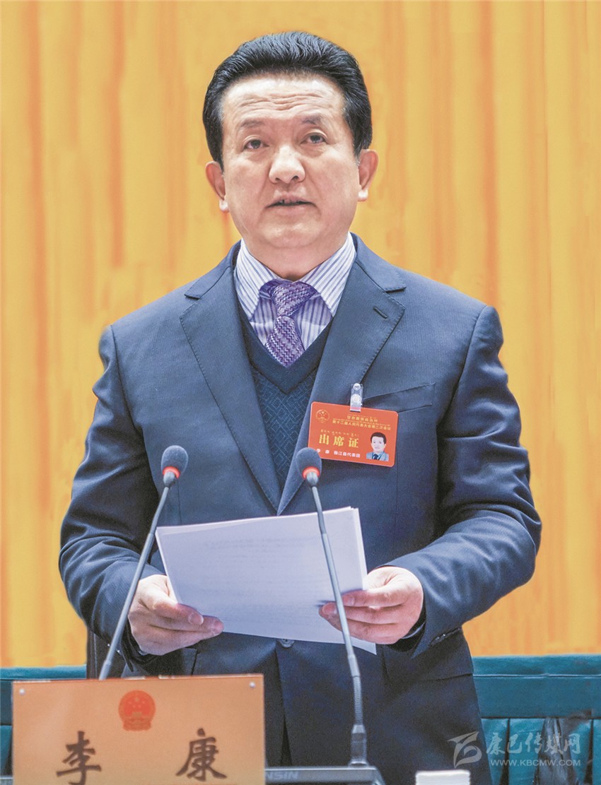 州長肖友才代表州人民政府向大會作政府工作報告。報告分三部分:2017年工作回顧;2018年主要目標任務;2018年重點工作。