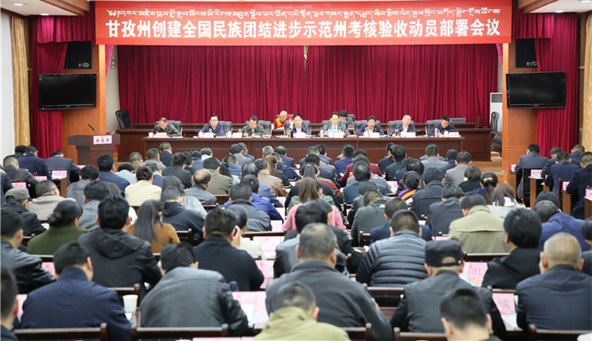 本網(wǎng)訊 近日,我州創(chuàng)建全國(guó)民族團(tuán)結(jié)進(jìn)步示范州考核驗(yàn)收動(dòng)員會(huì)在康定召開。州委書記劉成鳴出席會(huì)議并講話。他強(qiáng)調(diào),全州上下要以黨的十九大、習(xí)近平總書記關(guān)于民族工作系列重要講話和省委書記彭清華來(lái)州視察調(diào)研重要講話精神為指引,準(zhǔn)確把握全州民族工作面臨的新情況新問題,不斷加強(qiáng)和深化民族團(tuán)結(jié)進(jìn)步創(chuàng)建活動(dòng),不斷團(tuán)結(jié)凝聚起全州各族群眾力量,為同步全面建成小康社會(huì),打下堅(jiān)實(shí)基礎(chǔ),營(yíng)造良好環(huán)境,提供不懈動(dòng)力。州委副書記、州長(zhǎng)肖友才主持會(huì)議,州人大常委會(huì)主任李康、州政協(xié)主席向秋出席會(huì)議。