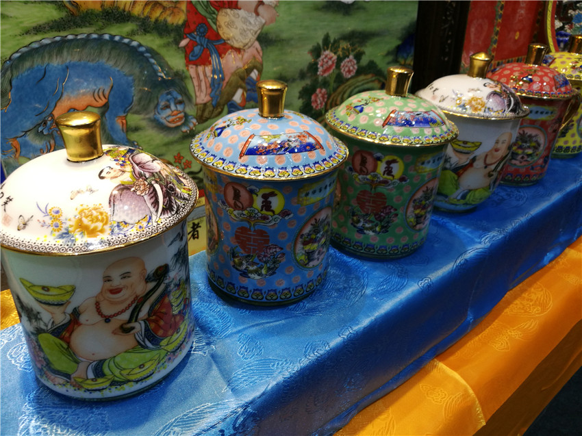 付國華在介紹時說,“高溫粉彩”必須以線條繪畫,將陶瓷唐卡染上顏料燒制,燒制完后再上色再燒制,然后再上色再燒制,在高溫1200度反復燒制五六次,才能達到一幅比較完整的唐卡。下步公司將黑陶作為新的挖掘目標,相信在馮建華老師的指導下,我州黑陶高溫粉彩陶瓷藝術將呈現(xiàn)出新亮點,“高溫粉彩”陶瓷藝術將在廣闊的市場中,為喜愛這一藝術品的消費者提供需求。