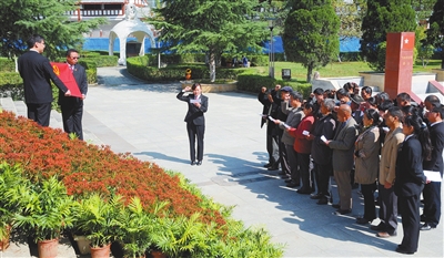 在瀘定橋紀(jì)念館重溫入黨誓詞。本網(wǎng)資料庫(kù)圖片