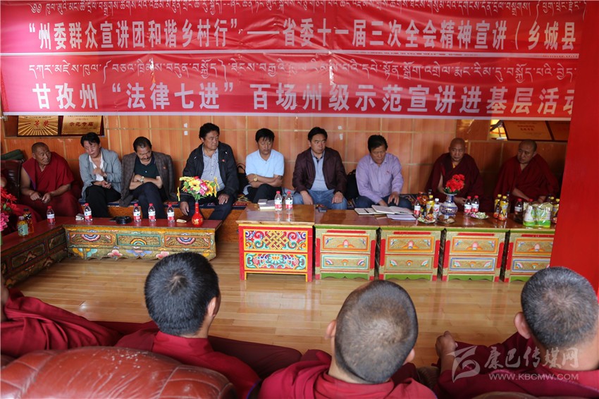 本網(wǎng)訊 按照州委統(tǒng)一安排部署,7月27日下午,州委群眾宣講團(tuán)深入色達(dá)縣色柯鎮(zhèn)東嘎寺開展了“州委群眾宣講團(tuán)和諧鄉(xiāng)村行”——省委十一屆三次全會(huì)精神暨“法律七進(jìn)”百場(chǎng)州級(jí)示范宣講進(jìn)基層活動(dòng)。