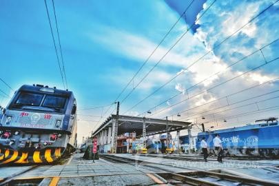 8月6日,中國(guó)鐵路成都局集團(tuán)有限公司成都機(jī)務(wù)段,南向班列(成都)從這里開往城廂站,駛往欽州港。