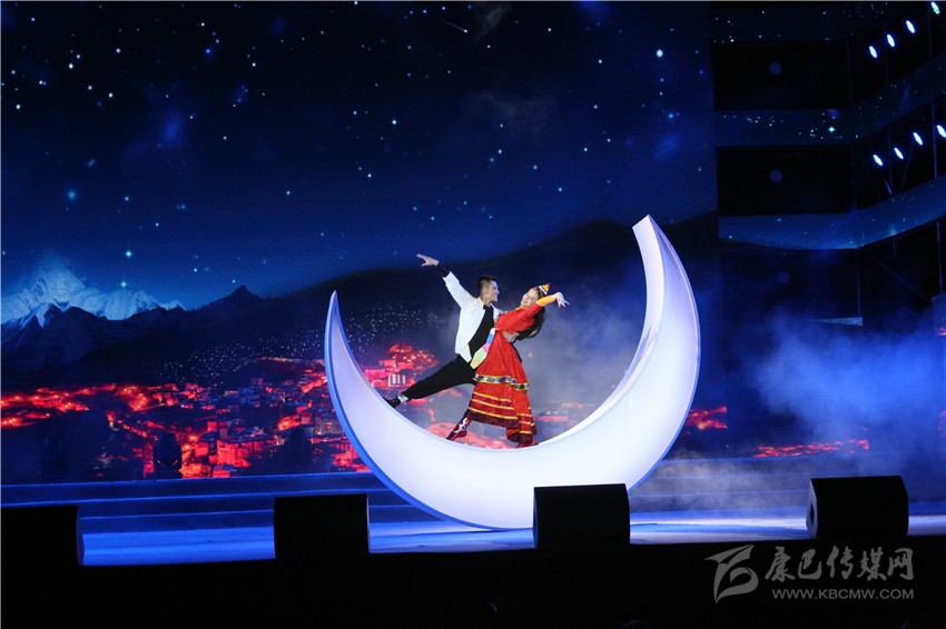 說唱《康定情歌》并配以街舞是本劇目對《康定情歌》演繹形式的大膽創(chuàng)新。演出中,幾名穿著時尚、朝氣蓬勃的青年,用歡快的節(jié)奏、靈活的動作,展現(xiàn)了《康定情歌》的深厚內(nèi)涵,也宣傳了康定的城市特質。獨具一格的表演讓人耳目一新、深受感染,體育場內(nèi)歡呼不斷、吶喊震天,觀眾的熱情與演員的激情互相激蕩,久久不絕。