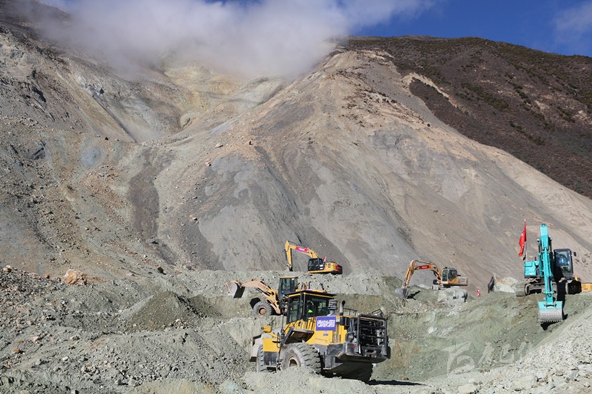 11月7日,又有7臺挖掘機抵達則巴村。當天中午,道路開辟工作開始全面推進。人輪班機器不休息,經(jīng)過半天一夜的不間斷施工,終于在8日8時過將通往江邊的7.5公里通道打通。挖掘機繼續(xù)沿著相對平坦的河床向上,開辟通往堰塞體壩頂?shù)牡缆贰?日下午2時28分,來自水電五局的挖機手趙明喜將第一臺挖掘機成功開上壩頂,比預計時間提前18個小時。“這個時間點我記得很清楚,這提前的18個小時給后續(xù)搶險救援騰出了寶貴的時間?!笔惫芾韽d副廳長毛德忠說。