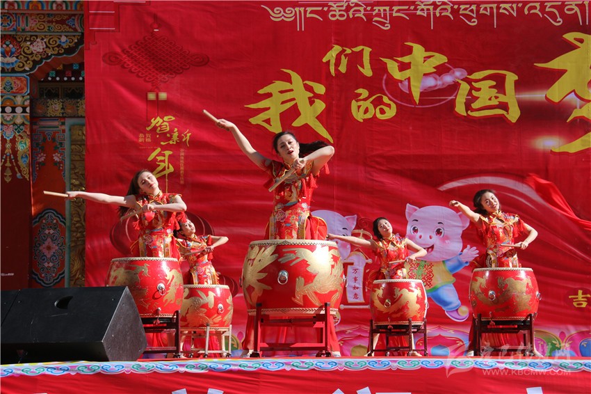 活動中,來自瀘定的20多名少年也熱情表演了舞蹈《鼓動新春》。小朋友們穿著火紅的盛裝,挎著精美的腰鼓,在舞臺上奔跑跳躍,熱情敲打,不僅敲出了喜悅,跳出了吉祥,也展示了甘孜人民生活越來越美好、精神越來越振奮的良好精神面貌。