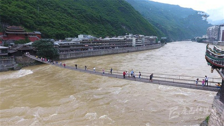 7月26日,四川瀘定縣瀘定橋上游人如織。新華社發(fā)(唐文豪 攝)